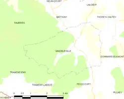 Vandeléville es una población y comuna francesa, en la región de Lorena, departamento de Meurthe y Mosela, en el distrito de Toul y cantón de Colombey-les-Belles.