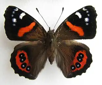 - ↑ Clunie, Leonie (23 de agosto de 2001). «Bug identification - Red admiral». Archivado desde el original el 24 de mayo de 2010. Consultado el 16 de julio de 2009.