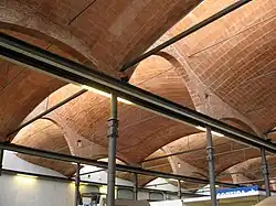 La cubierta de la nave principal está formada por arcos y bóvedas de ladrillo (bóveda catalana) tensadas con hierro. Las bóvedas se combinan con claraboyas adoptando el sistema de dientes de sierra. La nave no tiene ventanas: la iluminación cenital se consigue con las amplias claraboyas. Las bóvedas de la cubierta son osadas y estéticas: con materiales modernos (hierro fundido) y económicos (baldosas y ladrillos), Muncunill consiguió una combinación de funcionalidad y estética.