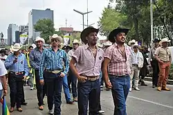 En México comenzó a gestarse una propia cultura gay vaquera con la ayuda de inmigrantes mexicanos en los Estados Unidos, quienes desarrollaron actividades dentro del ámbito de la vida nocturna, mezclando elementos culturales del Lejano Oeste con la cultura charra como distintivos propios de la cultura mexicana. En Ciudad de México, como también en los estados de Zacatecas y San Luis Potosí se organizan periodicamente distintos tipos de encuentros y reuniones de vaqueros gay, donde hombres homosexuales y bisexuales vestidos con sus atuendos típicos disfrutan de bailes y cantos de la música regional mexicana, beben tequila y otros tragos locales y disfrutan de la gastronomía típica nacional.[3]