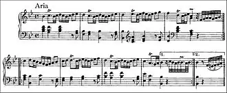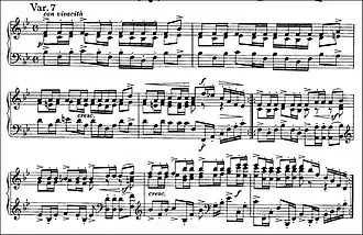La pieza está estructurada en un aria (el tema original), veinticinco variaciones y una fuga.