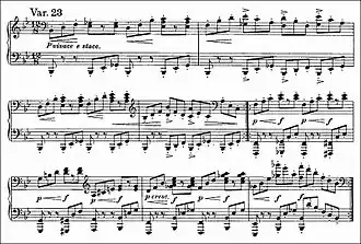 En la Variación 23 comienza el ascenso hacia un clímax final. Está claramente emparejada con la siguiente Variación 24, que continúa su patrón pero de una manera más apresurada y urgente.