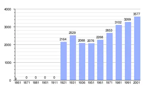 | Gráfica de evolución demográfica de Varna entre 1861 y 2001 |