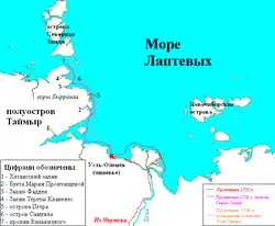 En 1735, Vasili Prónchishchev descendió el río Lena desde la ciudad de Yakutsk, en un balandro que bautizó con ese mismo nombre, Yakutsk, logrando doblar el delta y deteniéndose para la invernada en la desembocadura del río Olenek. Muchos miembros de la tripulación cayeron enfermos y debido principalmente al escorbuto, murieron. A pesar de las dificultades, en 1736, alcanzaron la costa oriental de la península de Taimyr, y se dirigieron al norte siguiendo su litoral. Finalmente, Prónchishchev y su esposa María (también conocida como Tatyana Fiódorovna) sucumbieron al escorbuto y murieron en el camino de regreso.