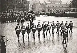 El 24 de junio de 1945, el general del ejército Vasili Sokolovski participó en el histórico Desfile de la Victoria de Moscú en la Plaza Roja, al frente de las unidades del Primer Frente Bielorruso.[3]