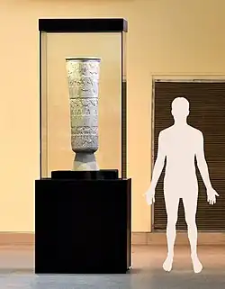 Consta de una base y cuatro franjas horizontales, con relieves que representan una escena de ofrendas en el templo de la diosa Inanna, relacionadas con la agricultura. Todas las figuras aparecen de estricto perfil.