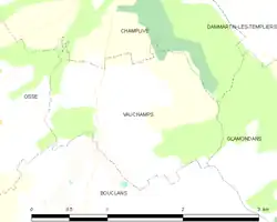 Vauchamps era una comuna francesa situada en el departamento de Doubs, de la región de Borgoña-Franco Condado, que el 1 de enero de 2018 pasó a ser una comuna delegada de la comuna nueva de Bouclans[3] al fusionarse con la comuna de Bouclans.
