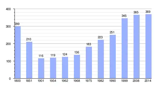 | Gráfica de evolución demográfica de Vaux-les-Prés entre 1800 y 2014 |