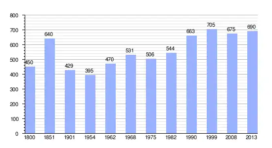 Los datos demográficos contemplados en este gráfico de la comuna de Vaux-sous-Aubigny[4] se han cogido de 1800 a 1999 de la página francesa EHESS/Cassini, y los demás datos de la página del INSEE.[5]