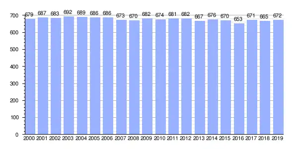 | Gráfica de evolución demográfica de Vedra entre 2000 y 2019 |