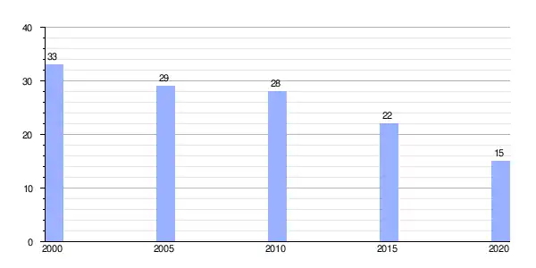 | Gráfica de evolución demográfica de Vega de Forcas entre 2000 y 2020 |