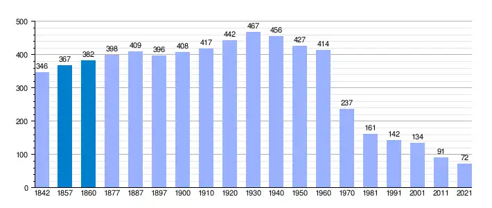 | Gráfica de evolución demográfica de Vega de Santa María[4] entre 1842 y 2021 |