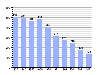 | Gráfica de evolución demográfica de Vega del Codorno[4] entre 1930 y 2021 |