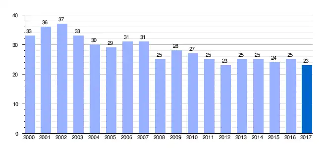 | Gráfica de evolución demográfica de Vegas de Domingo Rey[2] entre 2000 y 2017 |