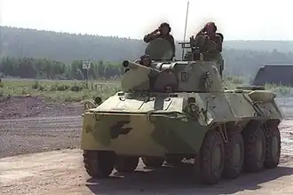Los transportes blindados de personal (también conocidos como APC, siglas en inglés de Armoured Personnel Carrier) son vehículos de combate ligeramente blindados para transportar infantería. Generalmente sólo están armados con una ametralladora, aunque puede tener variantes que utilicen otros tipos de armamento como morteros o misiles anticarro guiados. No están diseñado para el combate directo en el campo de batalla sino para llevar la infantería protegida de emboscadas y la metralla. Existen diseños con tracción de ruedas y de orugas.