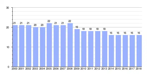 | Gráfica de evolución demográfica de Veiga entre 2000 y 2018 |