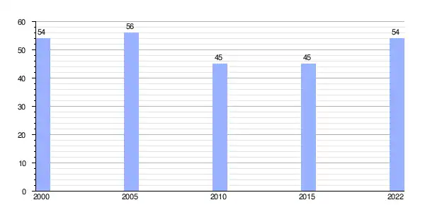 | Gráfica de evolución demográfica de Veiga (parroquia) entre 2000 y 2022 |