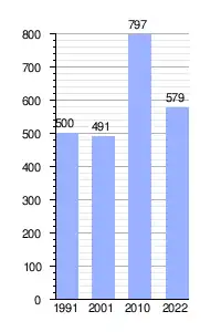 Tras el censo de 2022 se conoció una caída en el crecimiento sostenido de la localidad con 579 habitantes y unas 254 viviendas. Además, el censo dio a conocer datos de su composición poblacional (121 hombres 113 mujeres), población urbana sin población rural dispersa o localidades dispersas en el municipio (234) densidad y área urbana.[4][5]