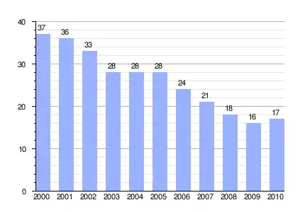 Población de derecho (2000-2010) según los censos de población del INE a 1 de enero de cada año.[7] |