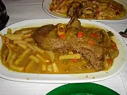 - Carne de la Montaña Palentina. Cabe reseñar el codillo asado y sobre todo las chuletillas, chuletas y chuletón, elaborados a partir de reses nacidas y criadas en la zona.[53]