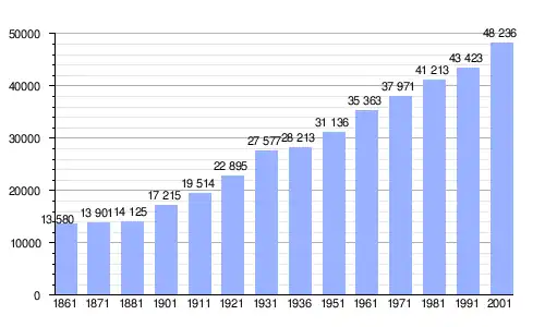 | Gráfica de evolución demográfica de Velletri entre 1861 y 2001 |