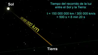![]() Tiempo aproximado del recorrido de la luz entre el Sol y la Tierra: 8 min 20 s | ||