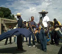 Los Chimbángueles, expresión músico teatral popular con que se ofrenda al santo negro, posiblemente sean una síntesis producida en tierras venezolanas de antiguas culturas africanas de diversas y desconocidas procedencias. Las culturas – Ewe Fon, de Dahomey (Togo, Benín), Efik, y Efok (Nigeria) e Imbangala (Angola), trasplantadas a esta región por el régimen esclavista, logran ensamblar en este rito, colmado de música frenética y danza, una manifestación auténtica que irradió la fuerza y la energía de esta tradición desde el sur del lago de Maracaibo a varios lugares de Venezuela y Colombia.[3]