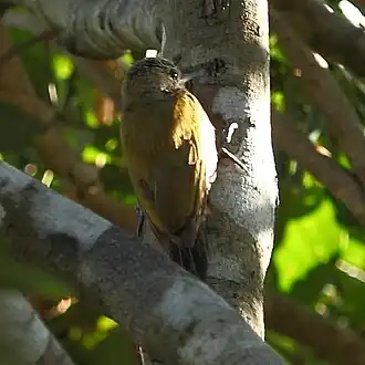 Ejemplar hembra de carpintero chico (Veniliornis passerinus) en Poconé, estado de Mato Grosso, Brasil. | ||
