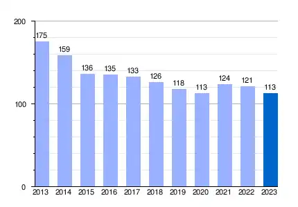 | Gráfica de evolución demográfica de Venta Quemada entre 2013 y 2023 |