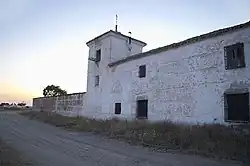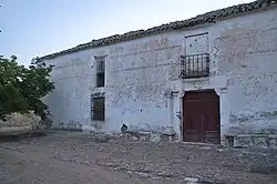 El frente oeste del patio está ocupado por dos espacios, el primero repite el esquema anterior de cocina, y paso al corral oeste, el segundo se trata de una gran cuadra, con acceso directo desde el patio. En la esquina se dispone de un espacio comunicado con las cuadras, donde se sitúa una escalera que lleva a la planta superior, destinada a palomar. El acabado de las fachadas es encalado, con el portón de color rojo en su centro, líneas horizontales de las verdugadas de ladrillo de tejar, que separan los cajones de los tapiales, destacando en la planta superior los huecos de ventanas que dejan un gran plano ciego en el conjunto rematado por la línea de cornisa y el plano de cubierta de teja árabe.[1]