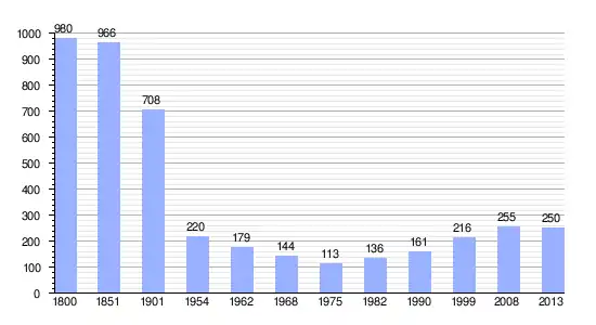 | Gráfica de evolución demográfica de Ventalon-en-Cévennes entre 1800 y 2013 |