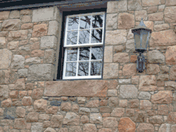 Ventana protegida con barrotes.