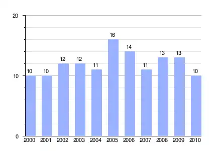 Población de derecho (2000-2010) según los censos de población del INE a 1 de enero de cada año.[7] |