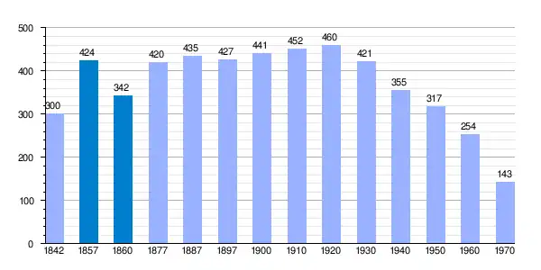 | Gráfica de evolución demográfica de Ventosa de San Pedro[5] entre 1842 y 1970 |