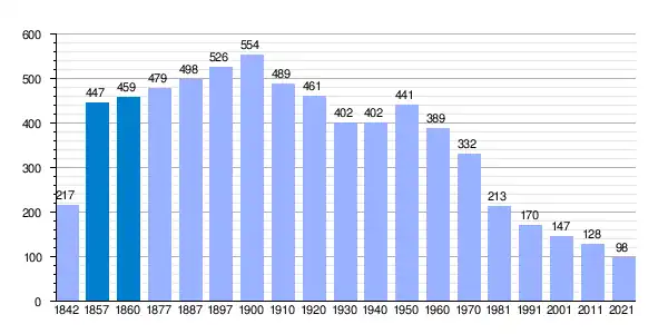 Cuenta con una población de 101 habitantes (INE 2024). La población está registrando un progresivo descenso desde el último tercio del siglo XX como consecuencia del envejecimiento de la población, la escasez de nacimientos y la emigración hacia núcleos más dinámicos.[48]