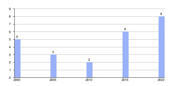 | Gráfica de evolución demográfica de Ventoselo entre 2000 y 2023 |