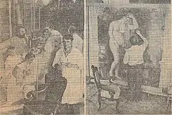 El lienzo resultó dañado durante la inundación del museo de arte "Máximo Gorki". Fue restaurado por Pavel Ivánovich Baranov, un famoso restaurador del centro de investigación y restauración de arte Ígor Grabar, quien resolvió el problema de la pérdida de una capa de pintura mediante retoques. Construyó un bastidor y vitrina especial para que los espectadores también pudieran ver el otro lado del lienzo con el cuadro En la terraza. [5] Después de eso, el lienzo terminó en Nizhny Novgorod.