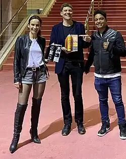 ![]() Verónica Loza con Juan Campodónico y Matías Silva en la entrega de los Premios Graffiti, Montevideo, 2020. | ||