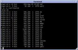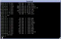 | Interfaz gráfica predeterminada | Interfaz de línea de comandos (Thompson shell) | ||||