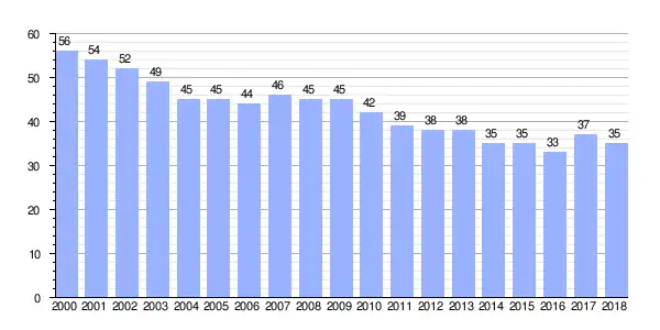 | Gráfica de evolución demográfica de Vesía entre 2000 y 2018 |