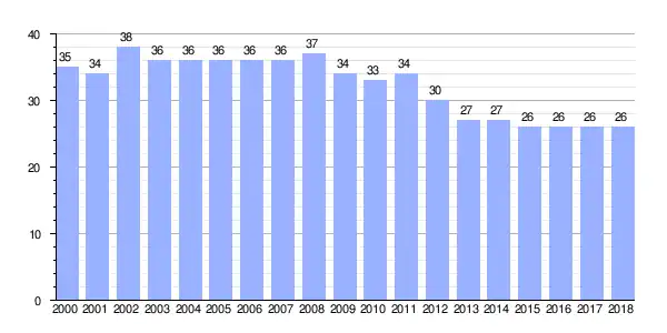 | Gráfica de evolución demográfica de Vexo entre 2000 y 2018 |