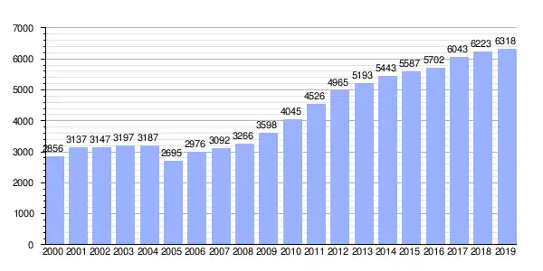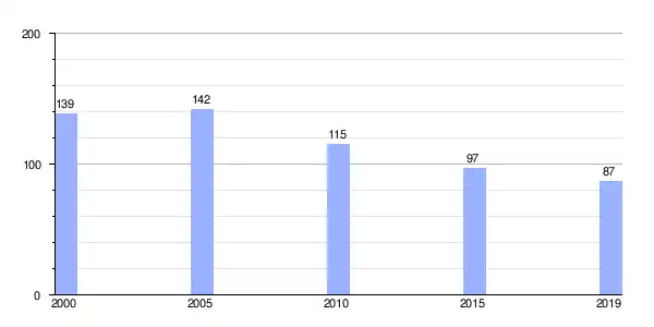 | Gráfica de evolución demográfica de Viñas (parroquia) entre 2000 y 2019 |
