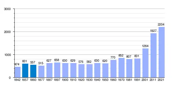 | Gráfica de evolución demográfica de Viñols y Archs[3] entre 1842 y 2021 |