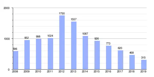 | Extranjera | 451 | 444 | 895 | 42.4% |