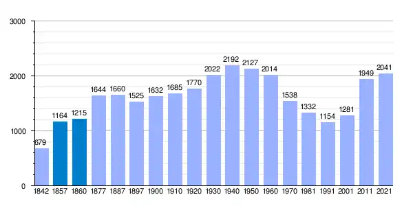 | Gráfica de evolución demográfica de Viñuela[4] entre 1842 y 2021 |