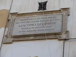 Superado este palacio, a la derecha se encuentra el Palazzo Giura, donde hay una placa que recuerda el quartierino (pequeño apartamento) en el que murió Giacomo Leopardi en 1837, cuyo acceso es por el número 2 del Vico Pero, callejón interior paralelo a la Via Santa Teresa que se abrió en 1735.