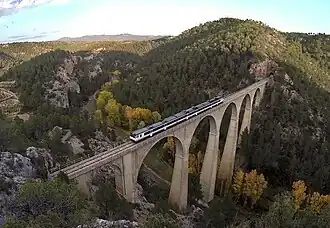 ![]() El viaducto en 2014, cruzado por un tren. | ||