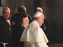 - ↑ Santa Sede, ed. (25 de mayo de 2014). «Encuentro privado con el patriarca ecuménico de Constantinopla — Declaración conjunta del santo padre Francisco y del patriarca ecuménico Bartolomé I». Libr. Editrice Vaticana. Consultado el 27 de mayo de 2014.