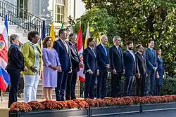 | 1-4 de noviembre | Con aprobación del congreso, Boluarte fue autorizada para viajar a Washington D. C. y al estado de Maryland para participar en la Cumbre Inaugural de Líderes de la Alianza de las Américas para la Prosperidad Económica (APEP).[24] En el transcurso del mismo, Boluarte participó en un foro junto a Gabriel Boric, presidente de Chile y Guillermo Lasso, presidente de Ecuador.[25] Además, se reunió con Rodrigo Chaves, Luis Lacalle, presidente de Uruguay e Ilan Goldfajn, presidente del Banco Interamericano de Desarrollo (BID)[26][27] y tuvo un diálogo con senadores y representantes del congreso de Estados Unidos.[28] A pesar de anunciarse una reunión bilateral entre Boluarte y Joe Biden, presidente de Estados Unidos, dicha reunión no se dio.[29] Debido a esto, la ministra de relaciones exteriores, Ana Gervasi, renunció a su cargo.[30][31] | ![]() | |