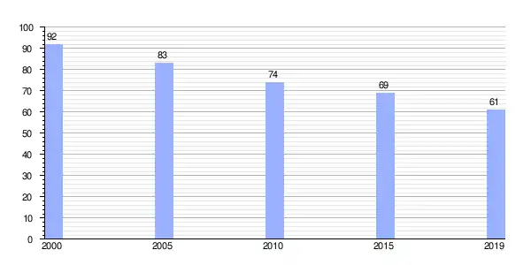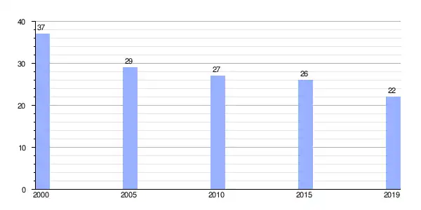 | Gráfica de evolución demográfica de Viana (aldea) entre 2000 y 2019 |